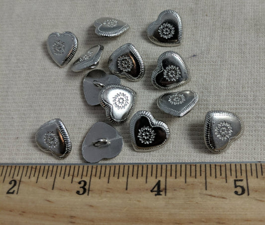 Button #PS377 #Shank #Silver #Heart #Metal #10pc