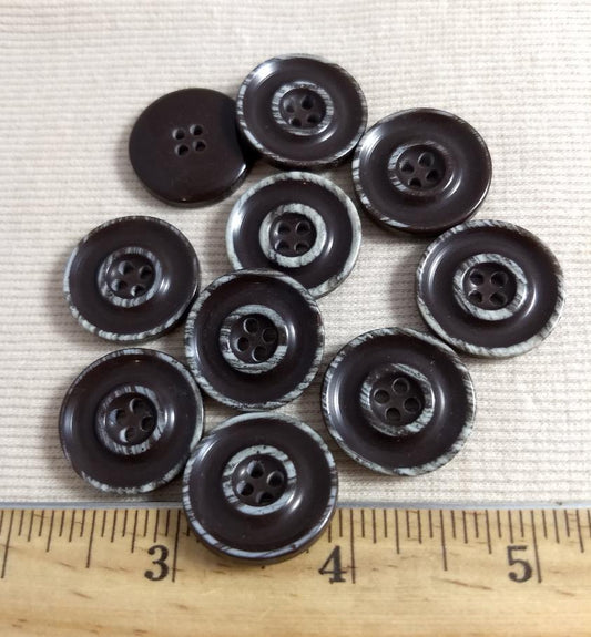 Button #15107 #4 Hole #Brown #Rim #Polyester #10pc