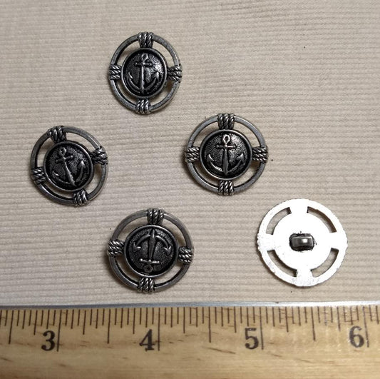 Button #6137 #Shank #Antique-Silver #Metal #Anchor #10pc