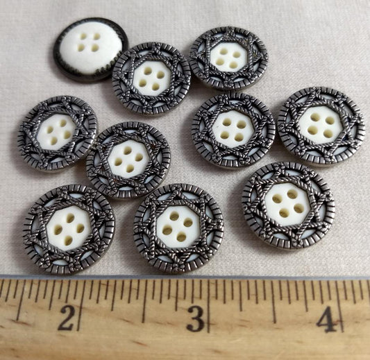 Button #7724 #Shank #White #Rim #Epoxy #Antique-Silver #Abs #10pc