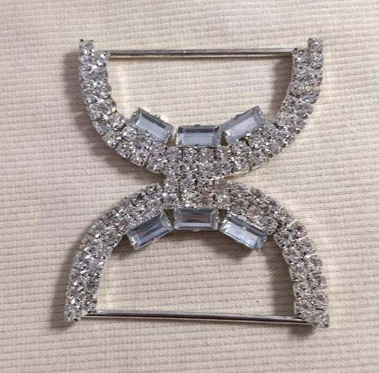 Buckle #09084-2 #Silver #Double-D-Ring #Rhinestone #Abs #1pc