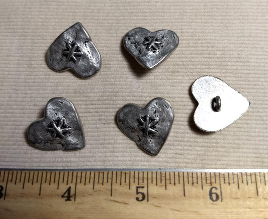 Button #K5063 #Shank #Antique-Silver #Heart #Metal #10pc