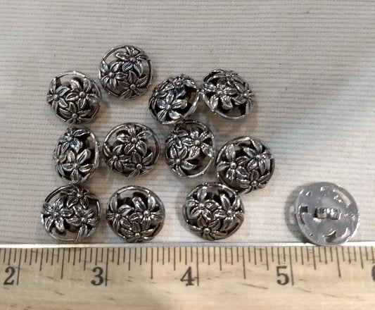 Button #JU1214 #Shank #Silver #Rim #Metal #Flower #10pc