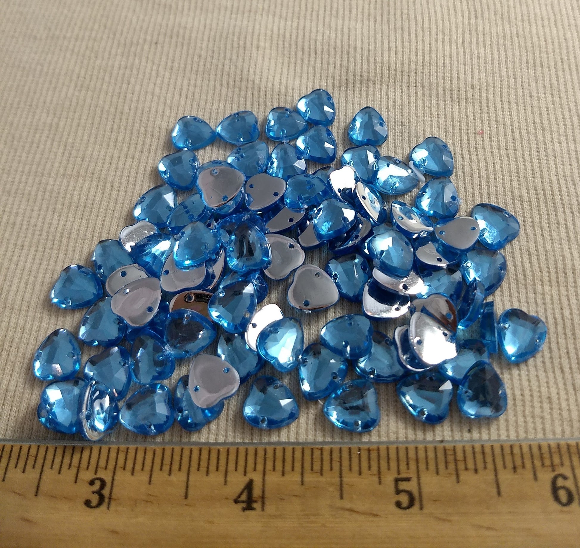 Bead XFFZ1011 #2-Hole #87 #Blue #Heart #Acrylic-Stone #100pc