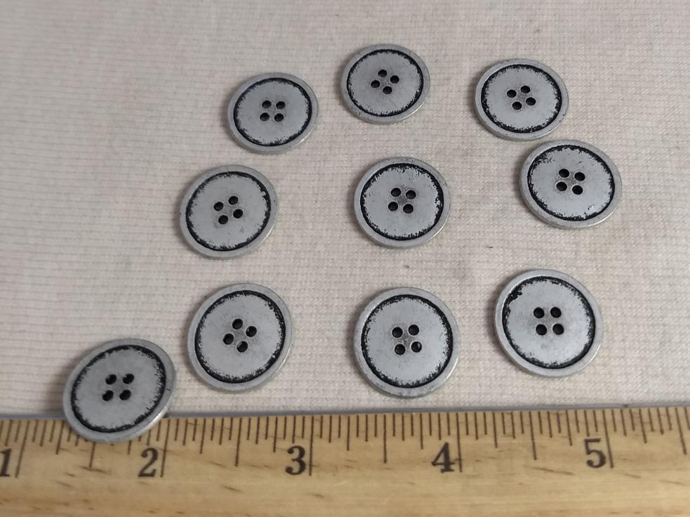 Button #Al120 #4-Hole #Antique-Silver #Rim #Metal #10pc