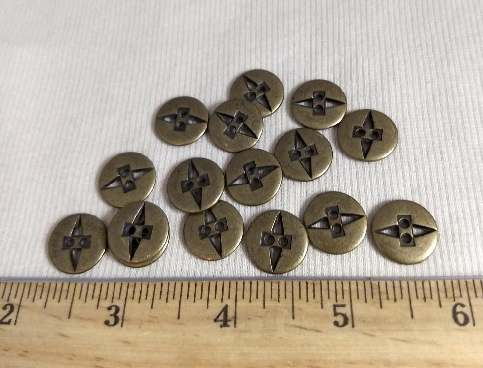 Button #AL6260 #2-Hole #Antique-Gold #Metal #10pc