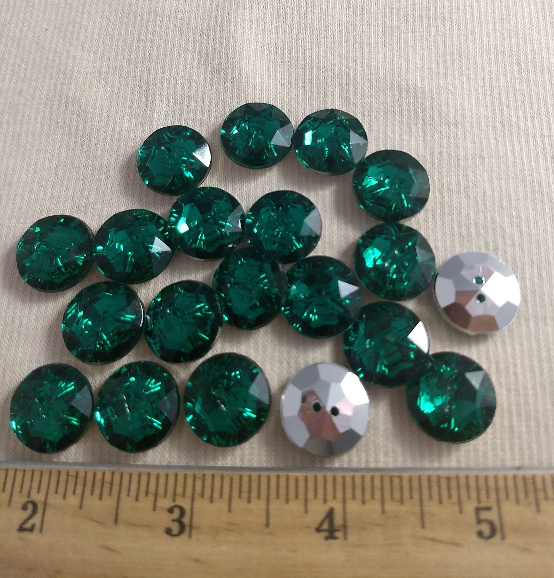 Button #SA2985 #2-Hole #Green #Round #Acrylic-Stone #20pc