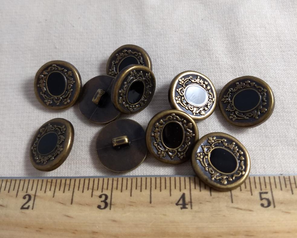 Button #JUK40 #Shank #Antique-Gold #Black #Epoxy #Rim #Metal #10pc