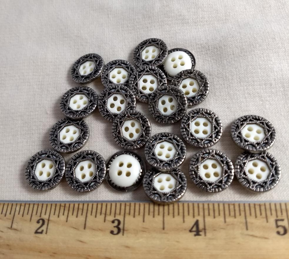 Button #7343 #4 Hole #White #Rim #Metal #10pc