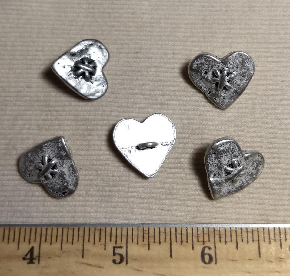 Button #K5063 #Shank #Antique-Silver #Heart #Metal #10pc
