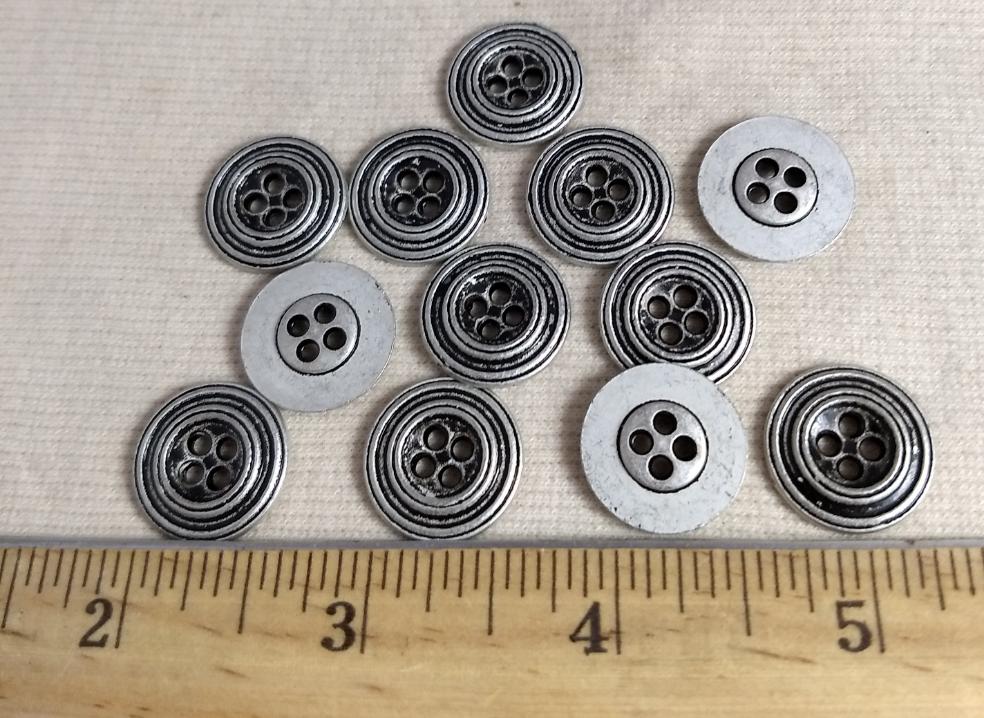 Button #AL137 #4-Hole #Antique-Silver #Rim #Metal #10pcs