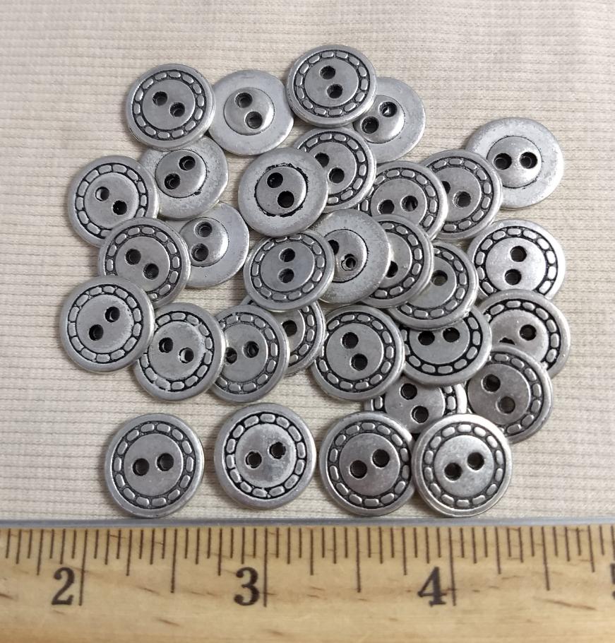 Button #K6064 #2-Hole #Antique-Silver #Rim #Metal #10pc