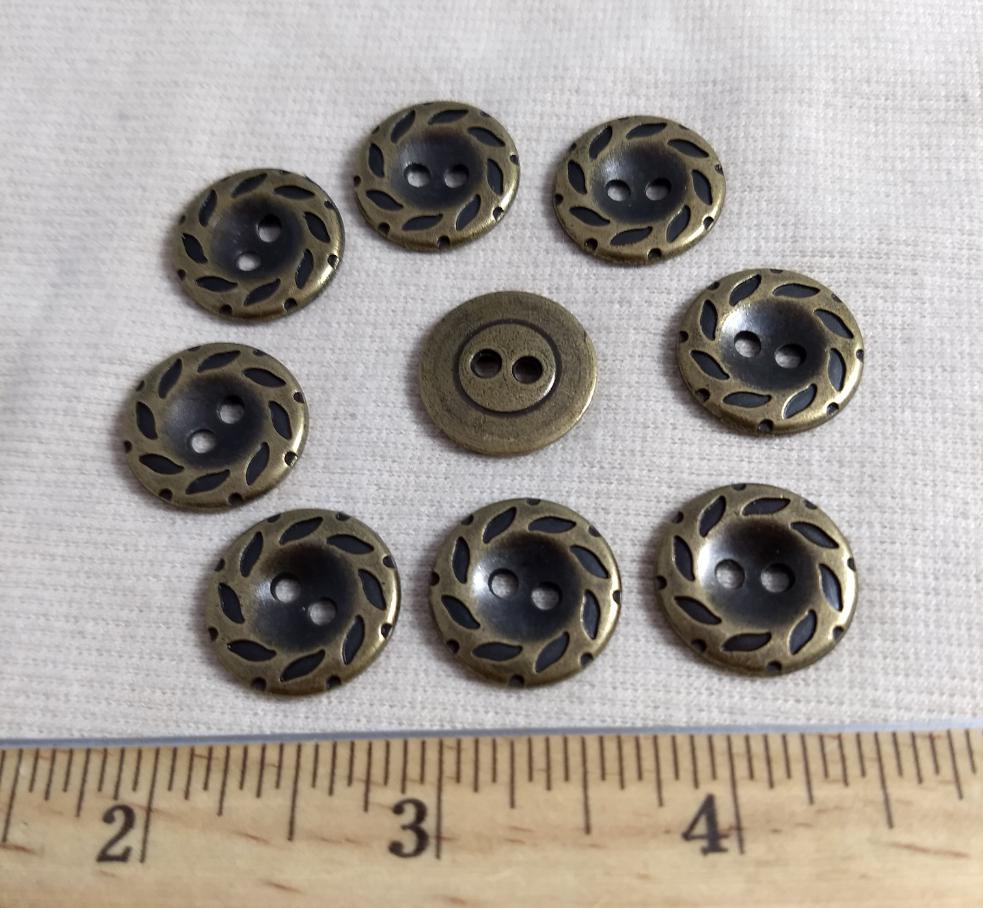 Button #AL6448 #2-Hole #Antique-Gold #Rim #Metal #10pc