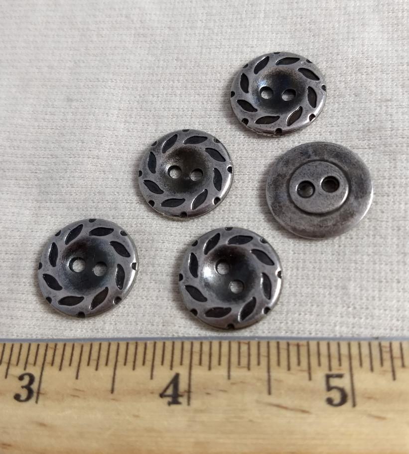 Button #AL6448 #2-Hole #Antique-Silver #Rim #Metal #10pc