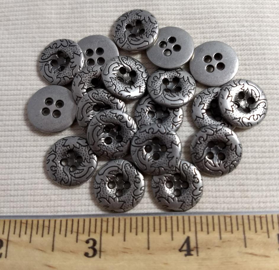 Button #K6116 #4-Hole #Antique-Silver #Rim #Metal #10pc