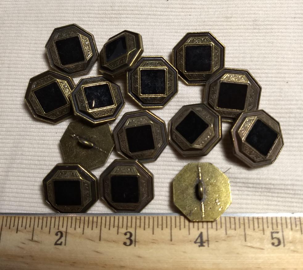Button #7064 #Shank #Antique-Gold #Black #Epoxy #Metal #10pc