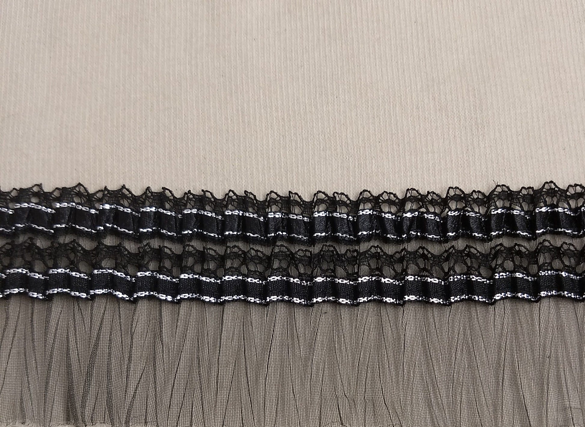 Ribbon #A292 #Black #Silver #Stretch #Scalloped #Lace #1yd